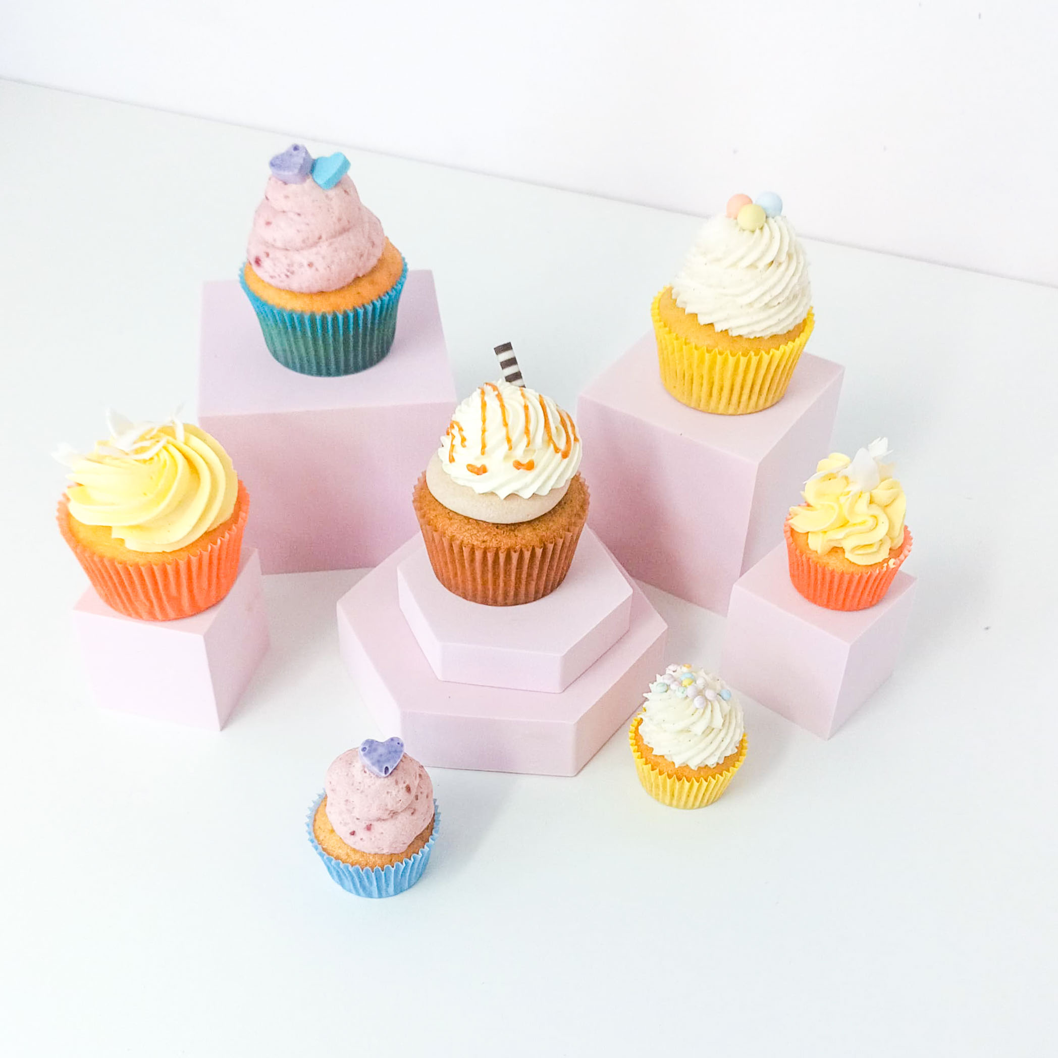 Verwöhnen Sie Ihre Gäste aus unserem Tagessortiment an Cupcakes, Lady Cakes, Cake Pops, Macarons, Bars, Mini Cakes, Cookies und saisonalen Produkten.
